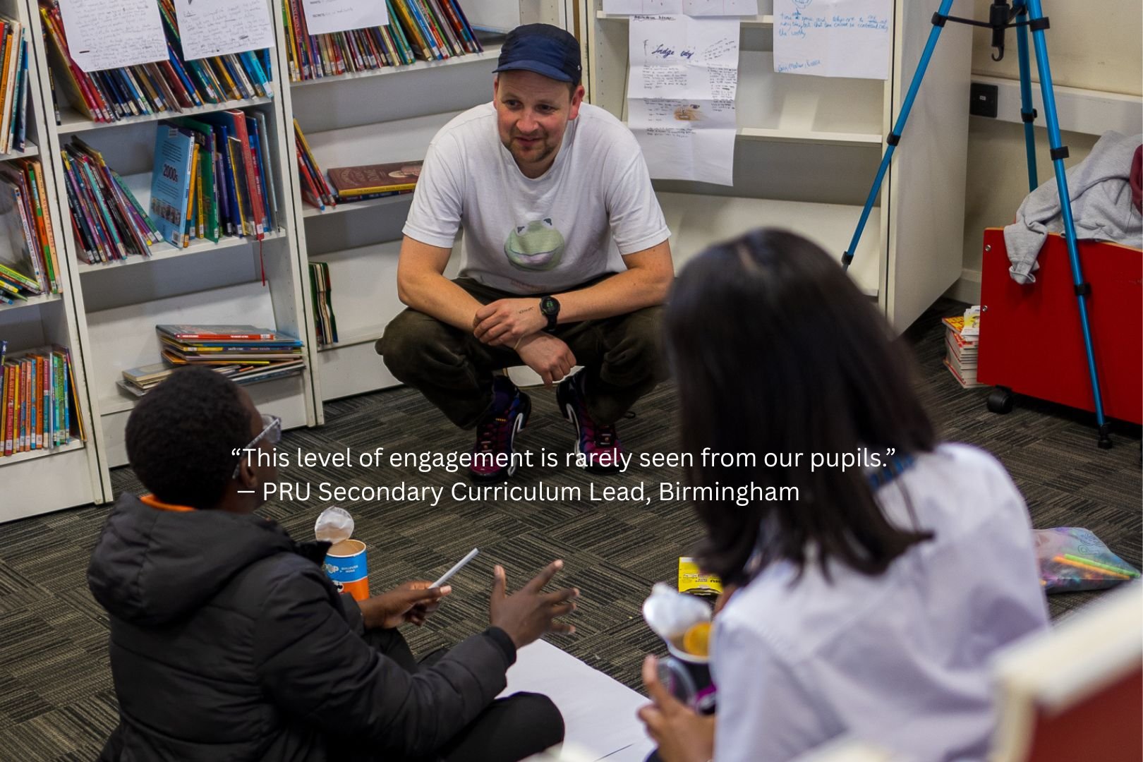 Where useful, the work can be steered towards forms such as descriptive writing, character voice or atmosphere, with curriculum links and outcomes growing out of the process rather than driving it.